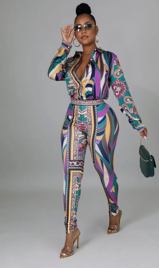 Two-piece set Collar Long sleeve Button closure