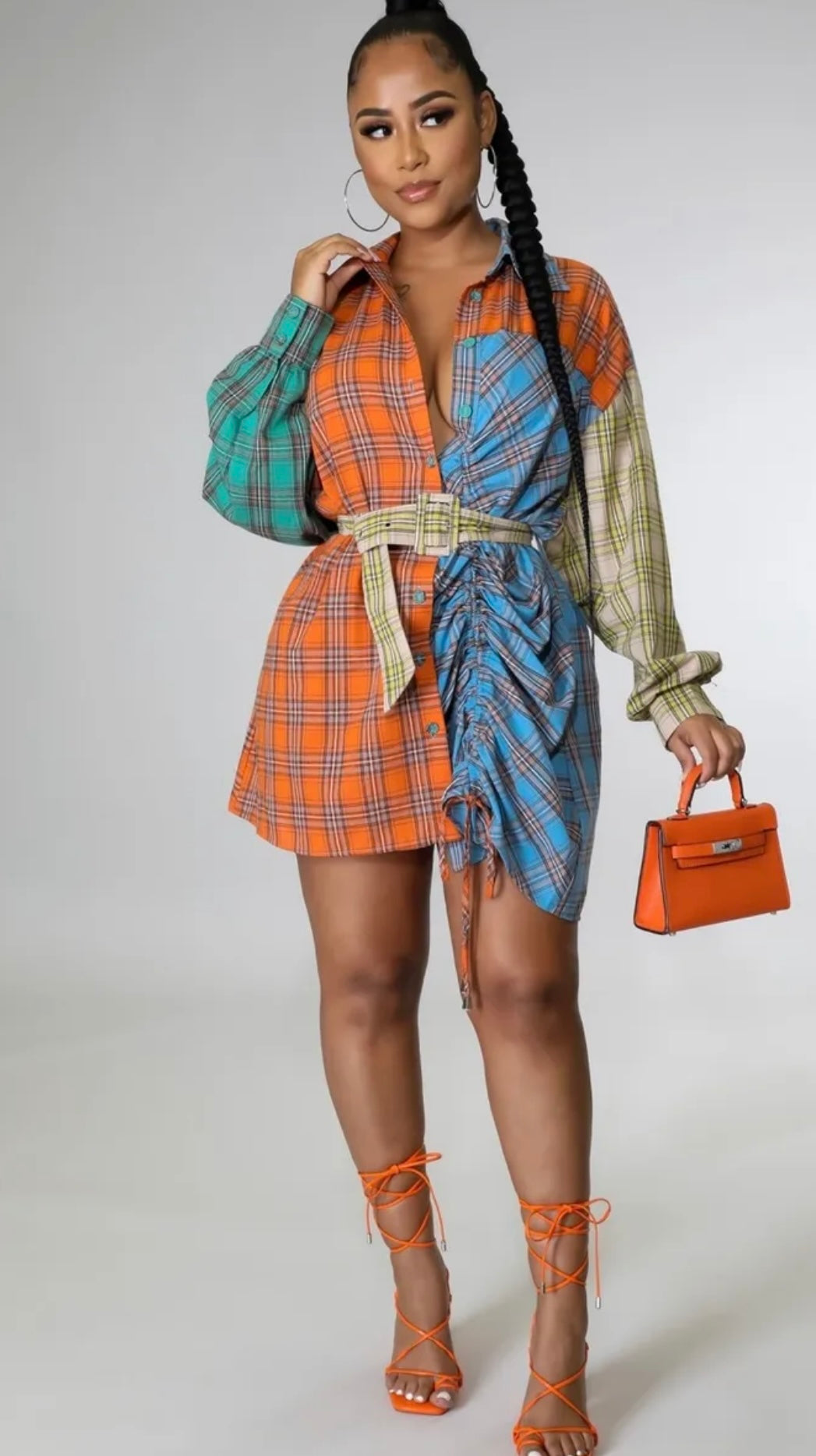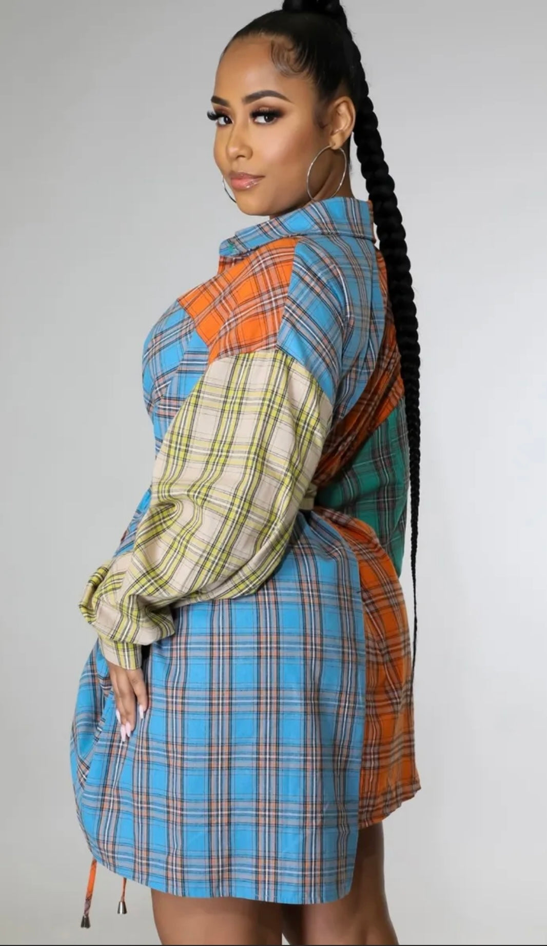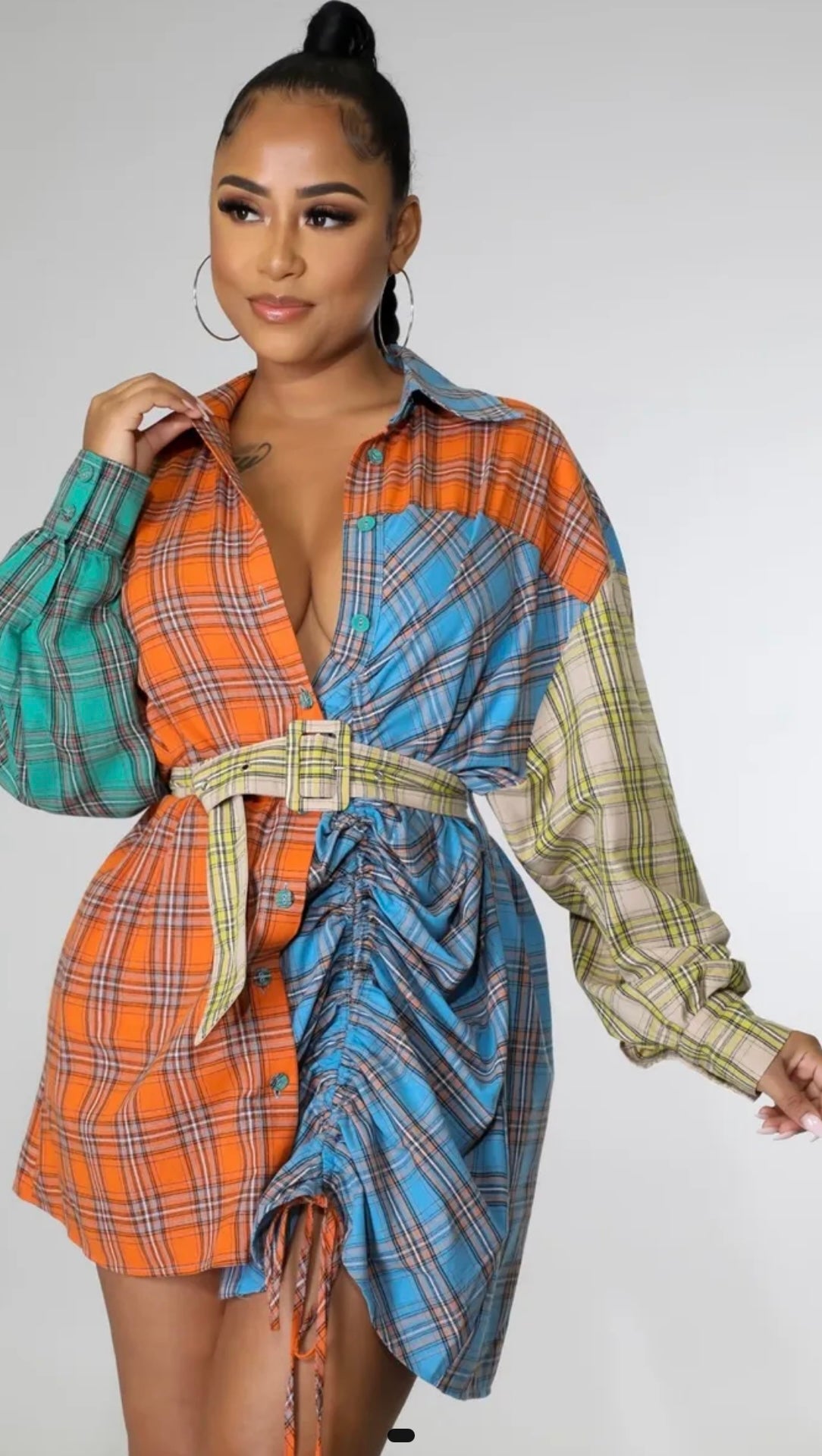 Tunic Dress Collar Long sleeves Ruched Drawstring