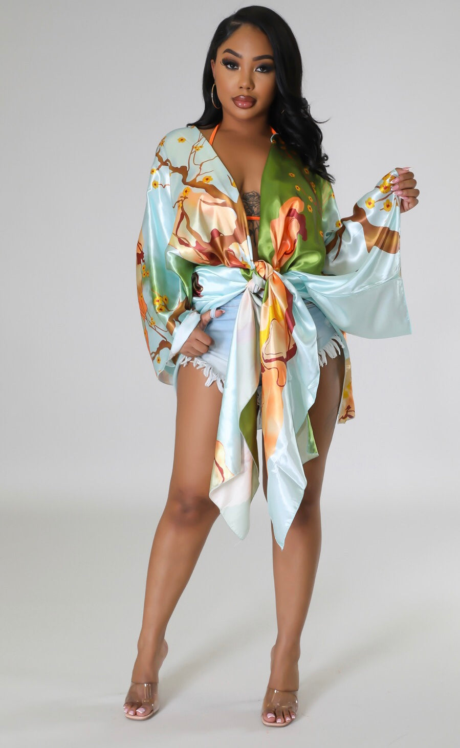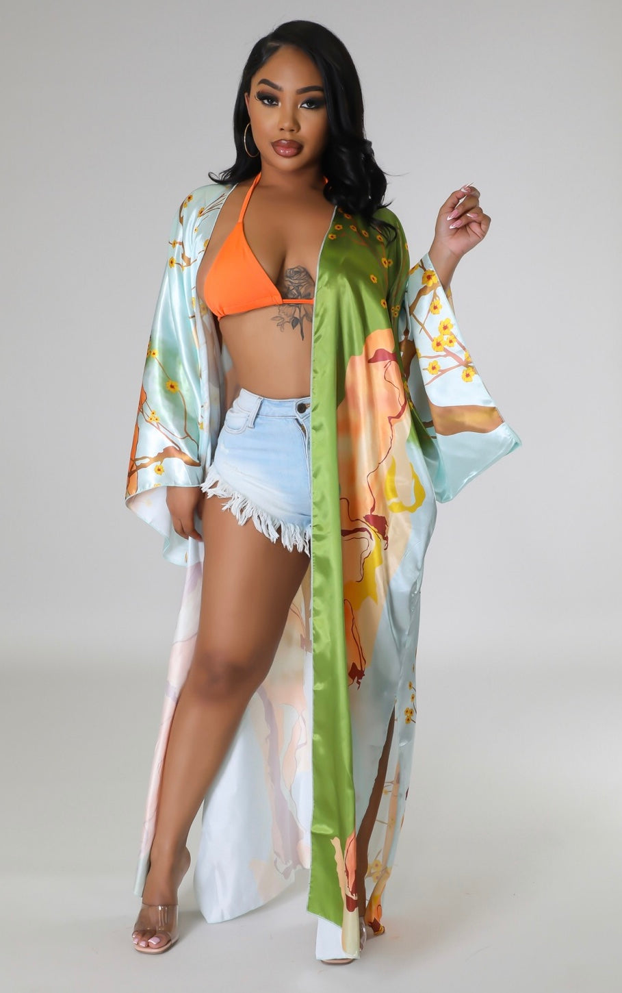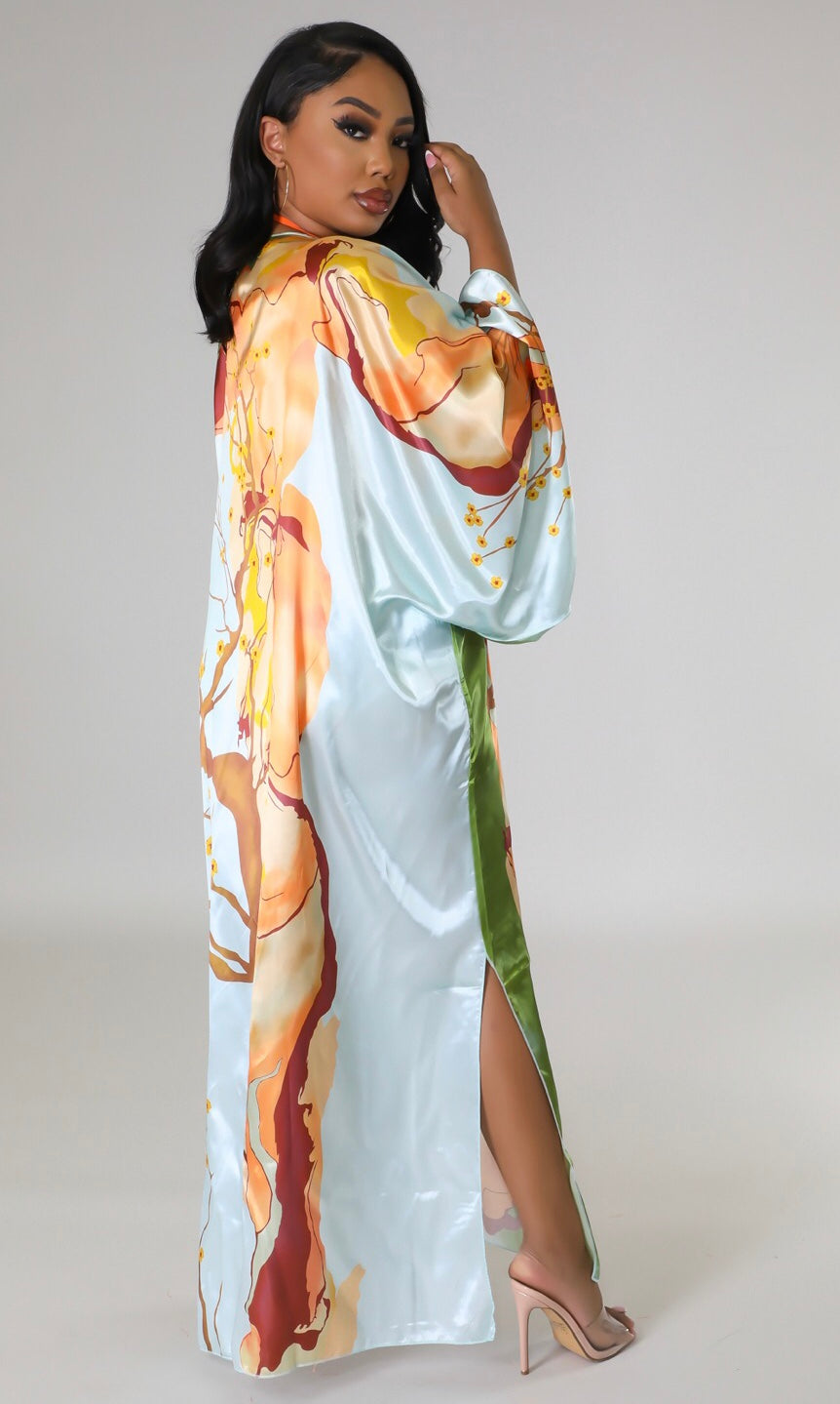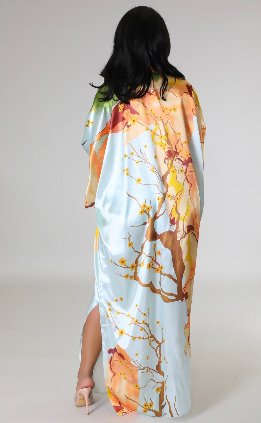 Long Kimono Cardigan Long sleeves Satin No closure