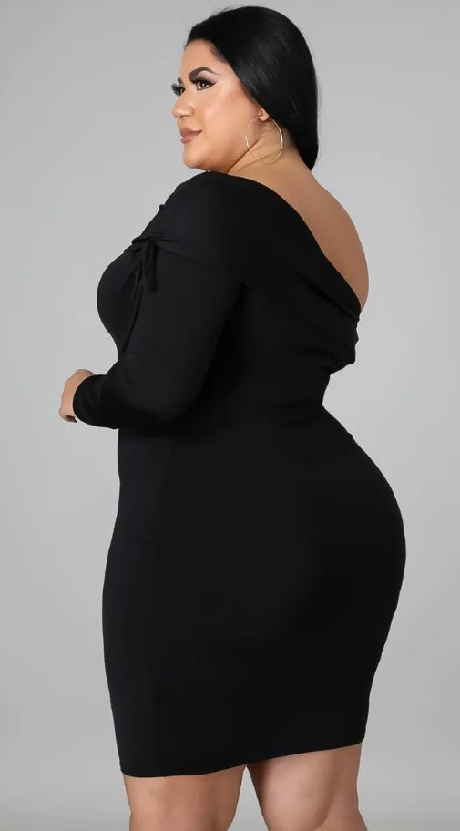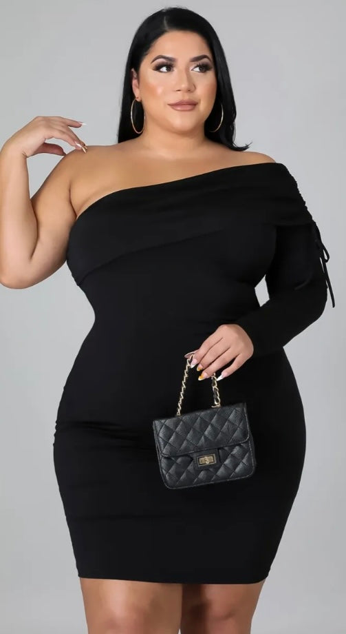 Stretch dress One shoulder Long sleeve Ruched Self-tie