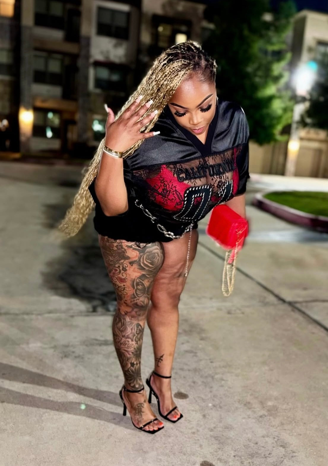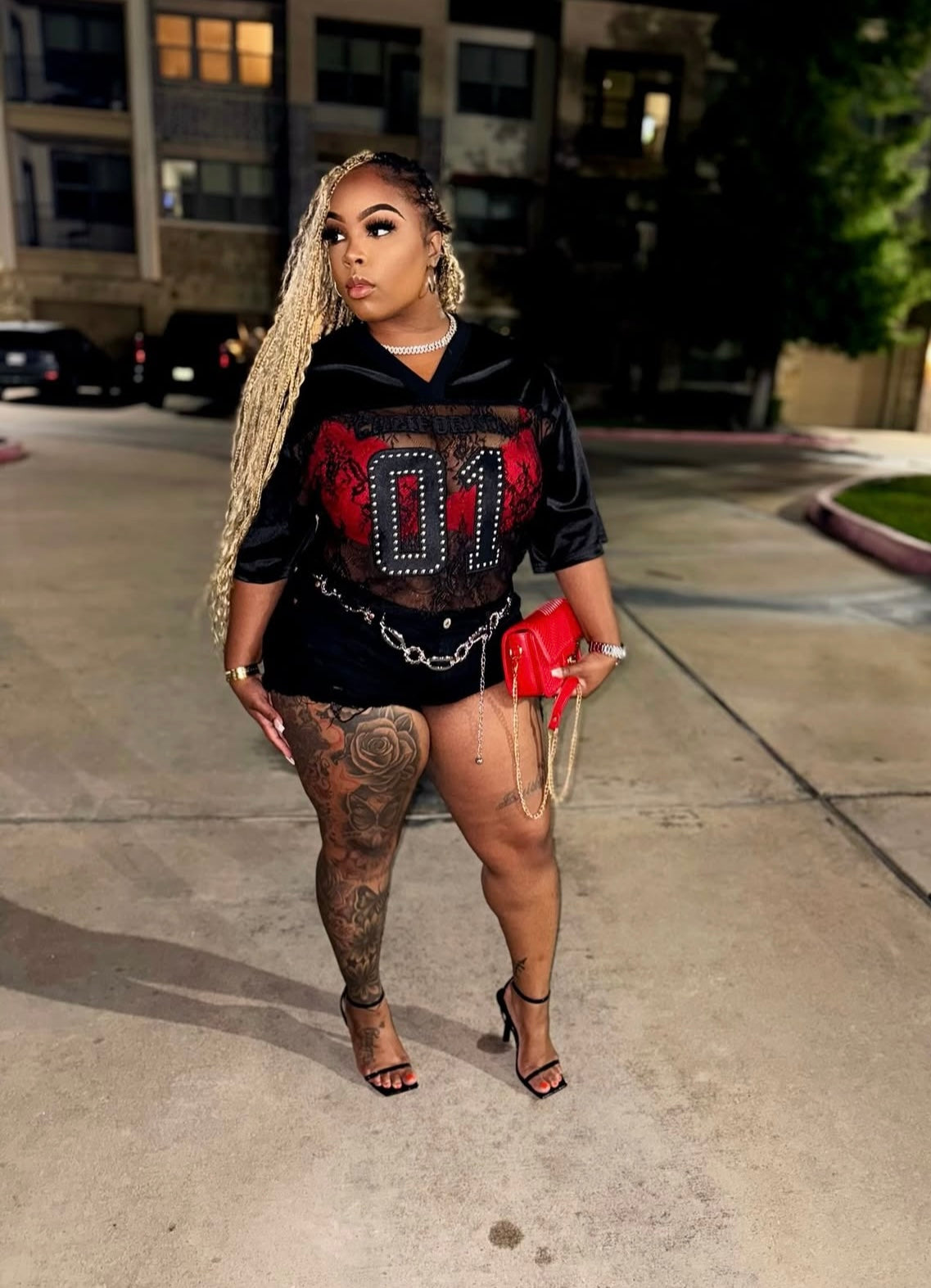 Oversized short sleeve lace v-neck top featuring rhinestone detais