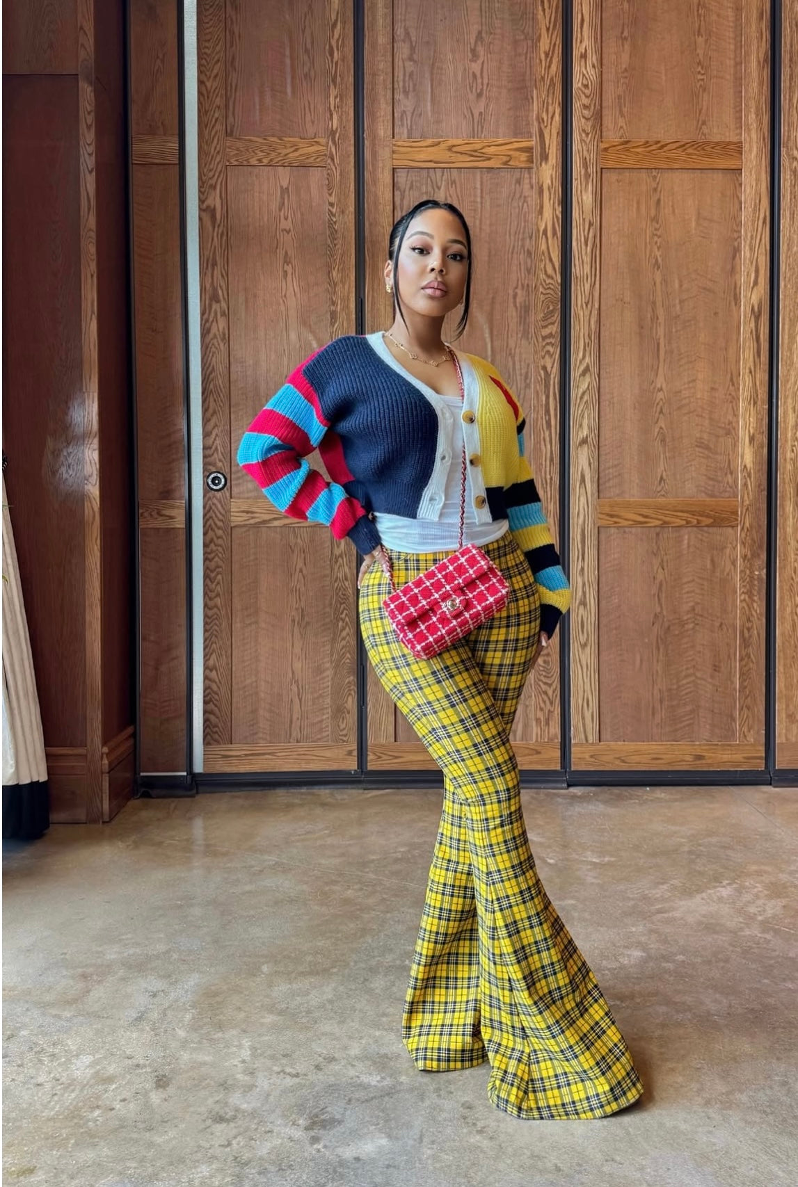 London Plaid Bell Bottom Pants